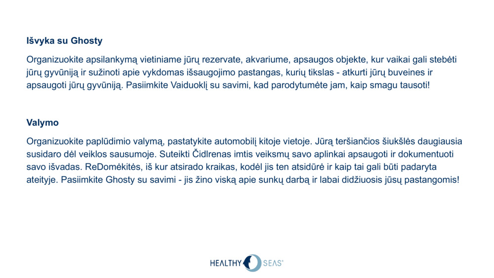 Turinį sukūrė Healthy Seas Foundation
