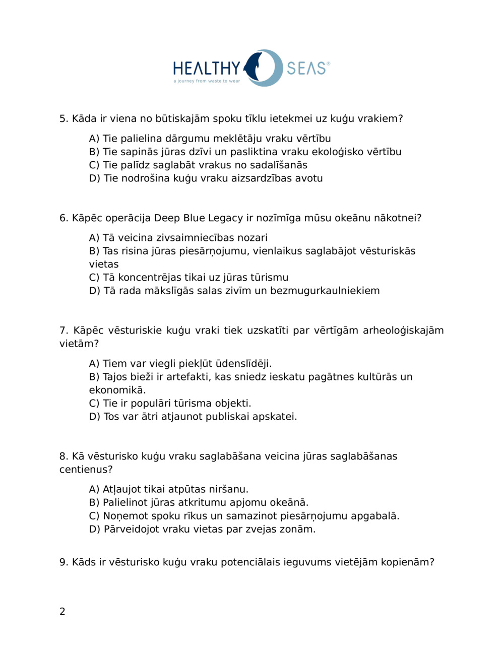 Saistītās tēmas: Bioloģiskā daudzveidība. Okeāns. Plastmasas piesārņojums. Kultūras mantojums.